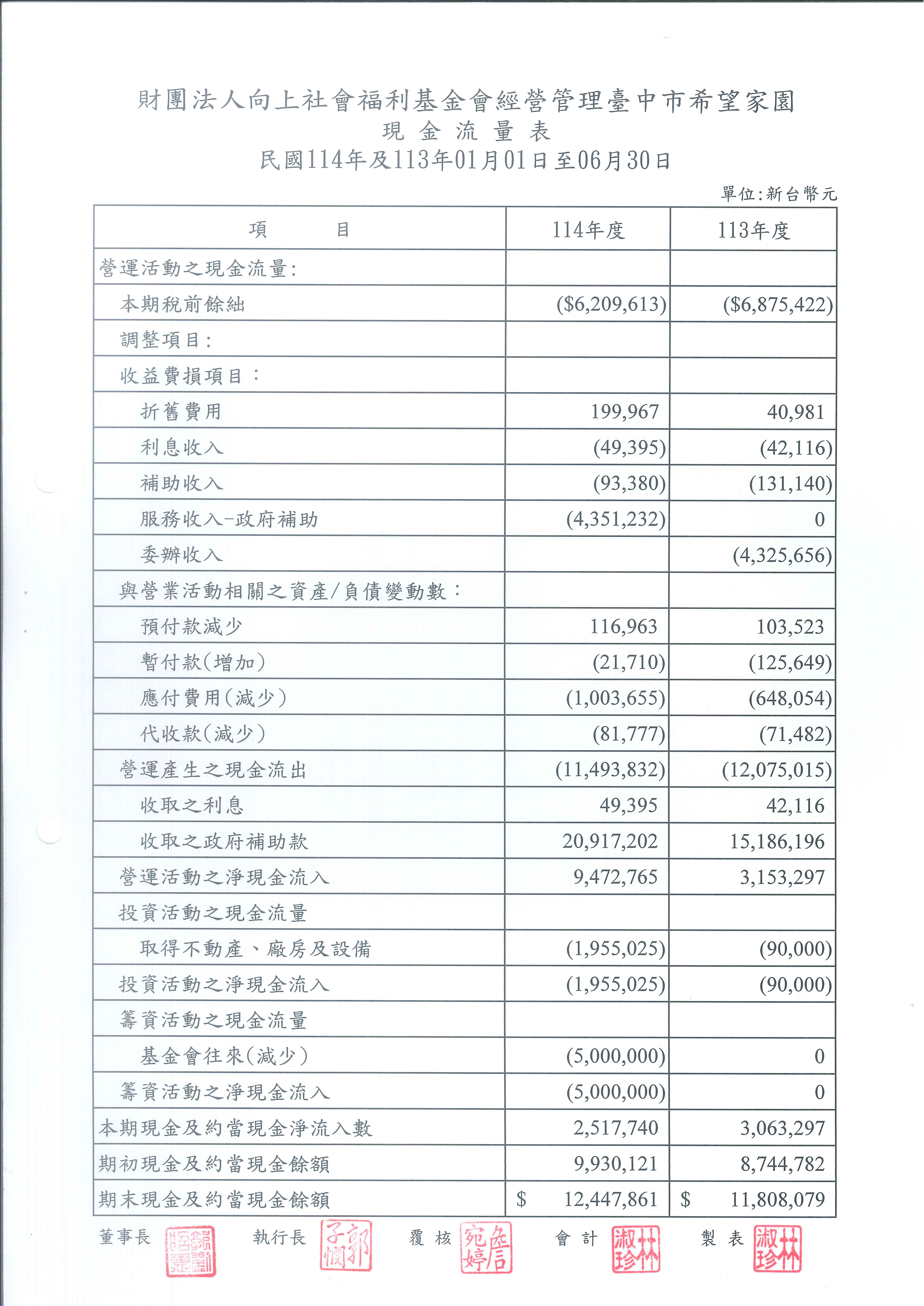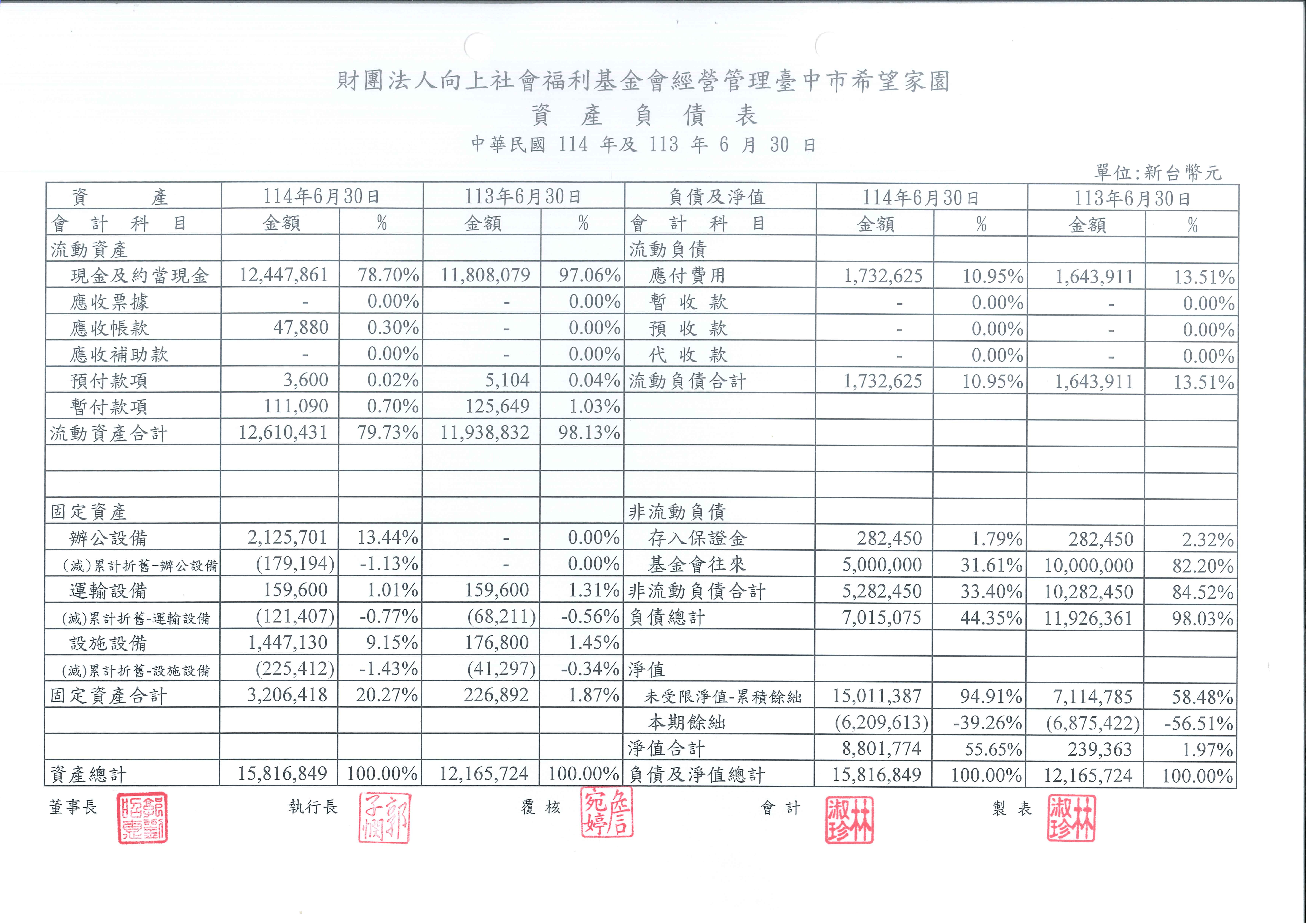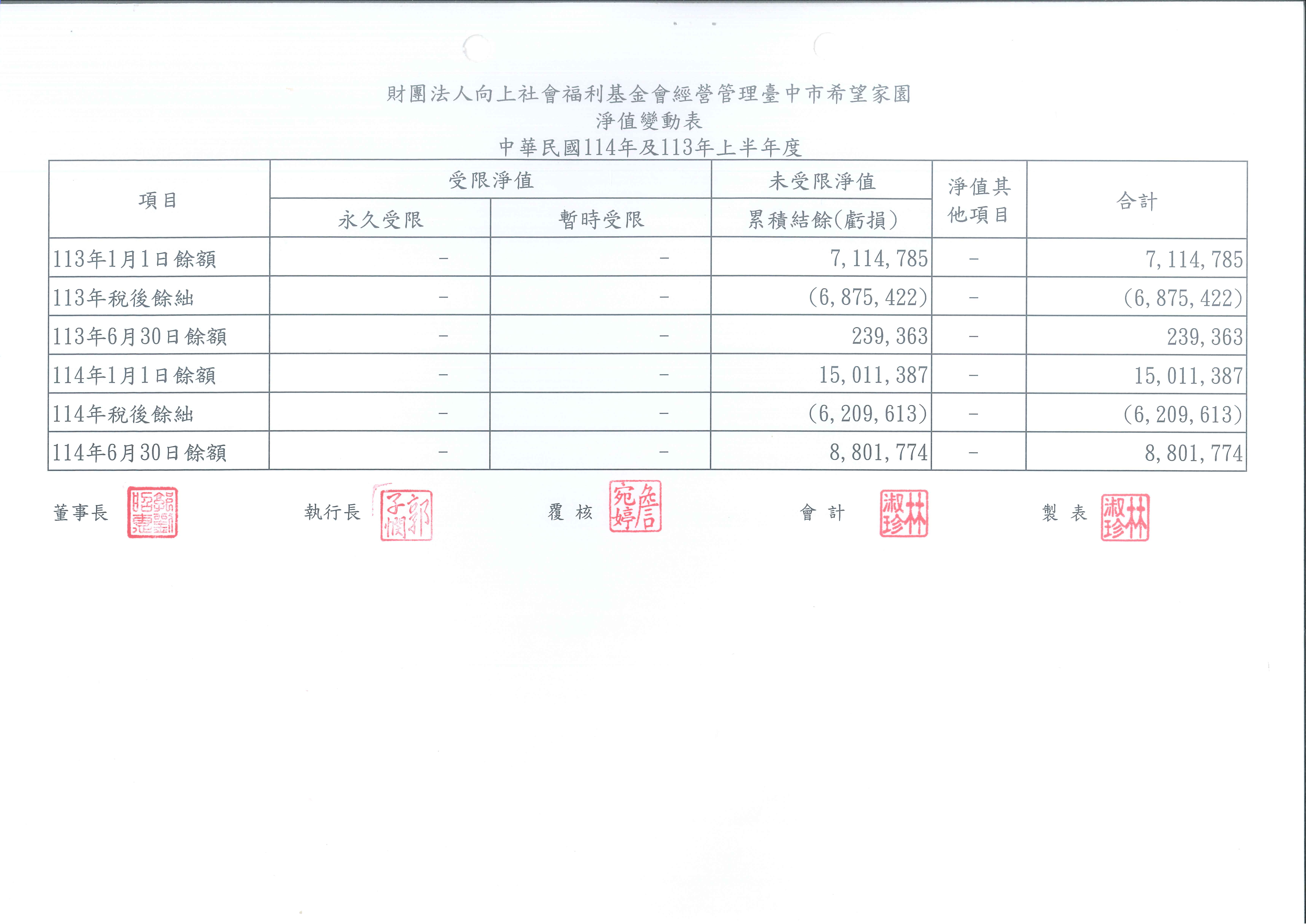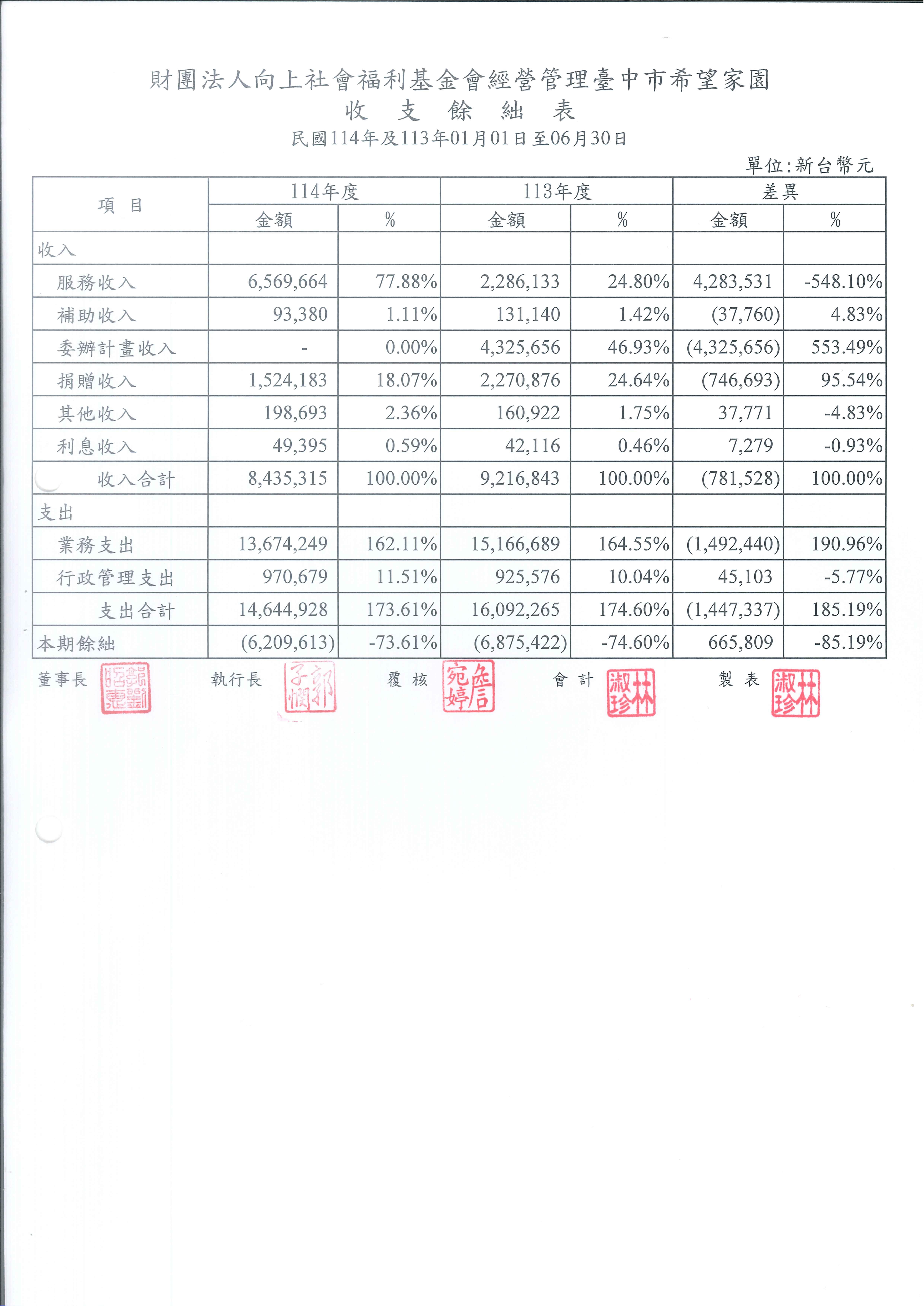 114年度上半年財務報表公告-經營管理臺中市希望家園