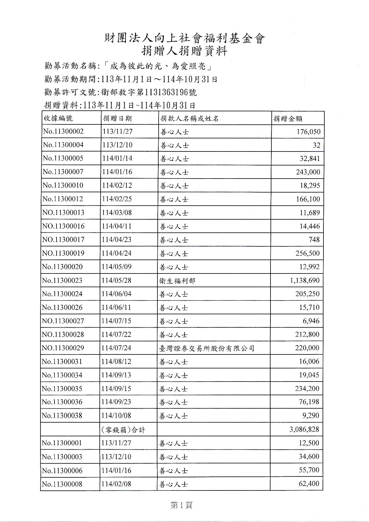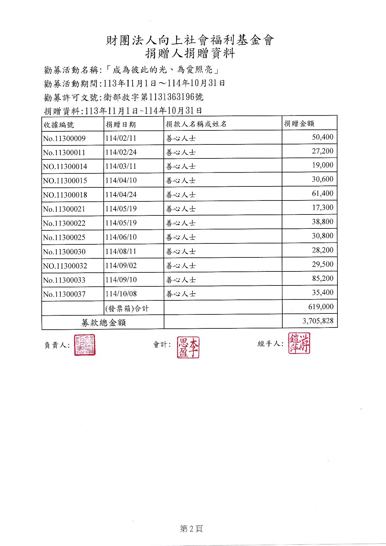 113年「成為彼此的光、為愛照亮」公益勸募活動募得款及使用情形
